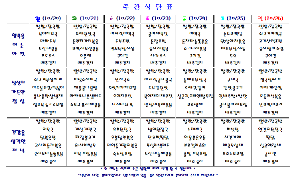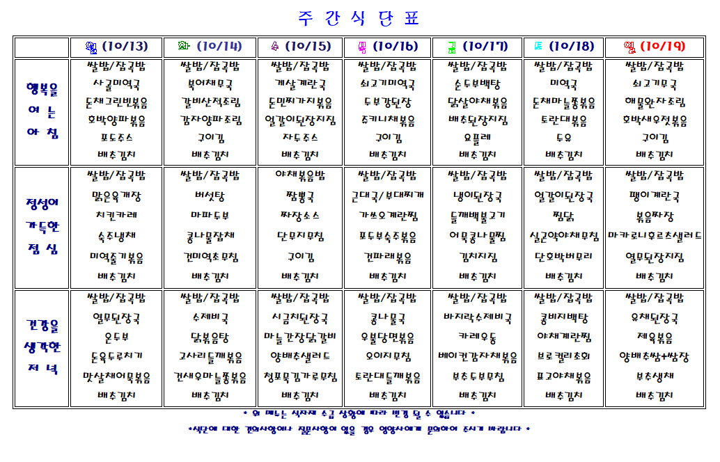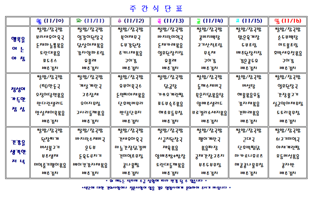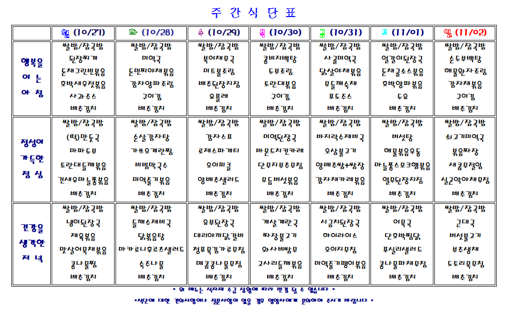 주간 식단표