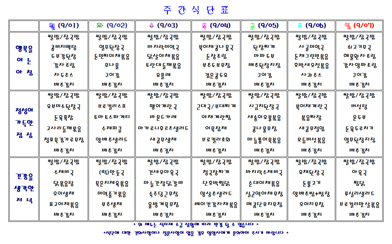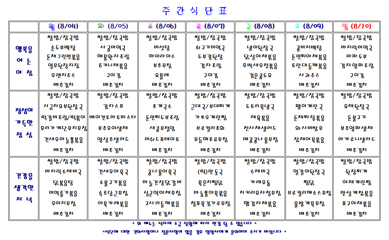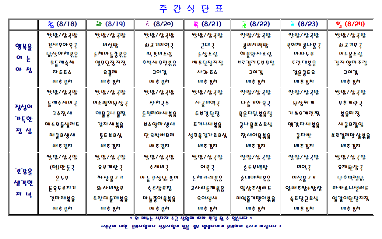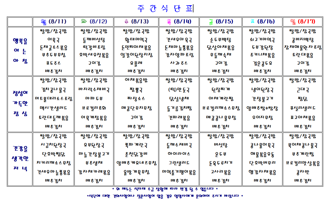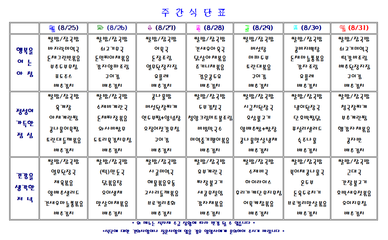 주간 식단표