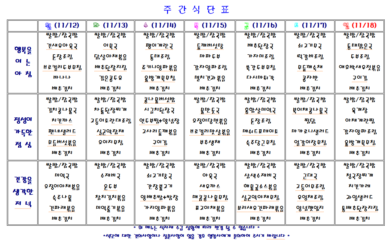 별내요양병원 2019.6.17~6.23 식단표 입니다.