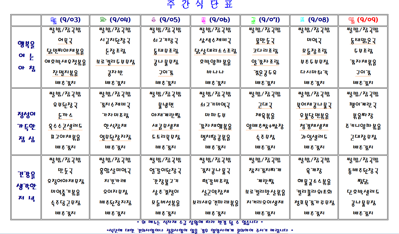 별내요양병원 2019.4.29~5.5 식단표 입니다.