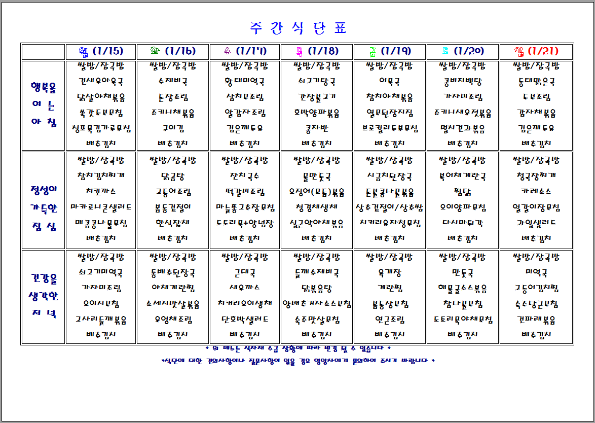 별내요양병원 2018.7.30~8.5 식단표 입니다.