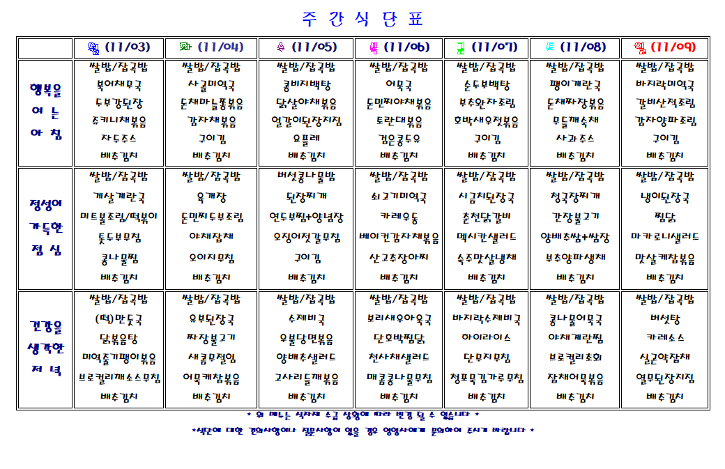 주간 식단표