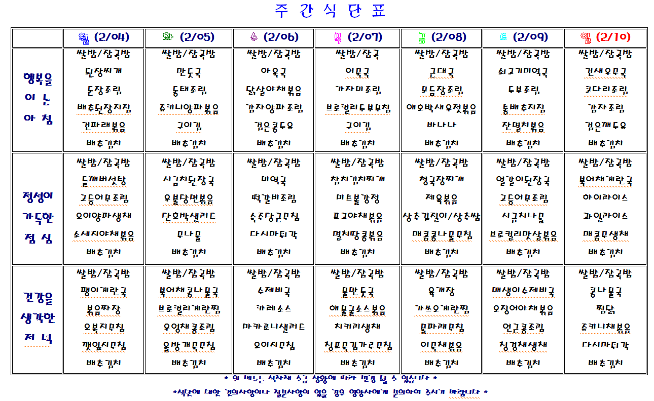 별내요양병원 2019.9.23~9.29 식단표 입니다.