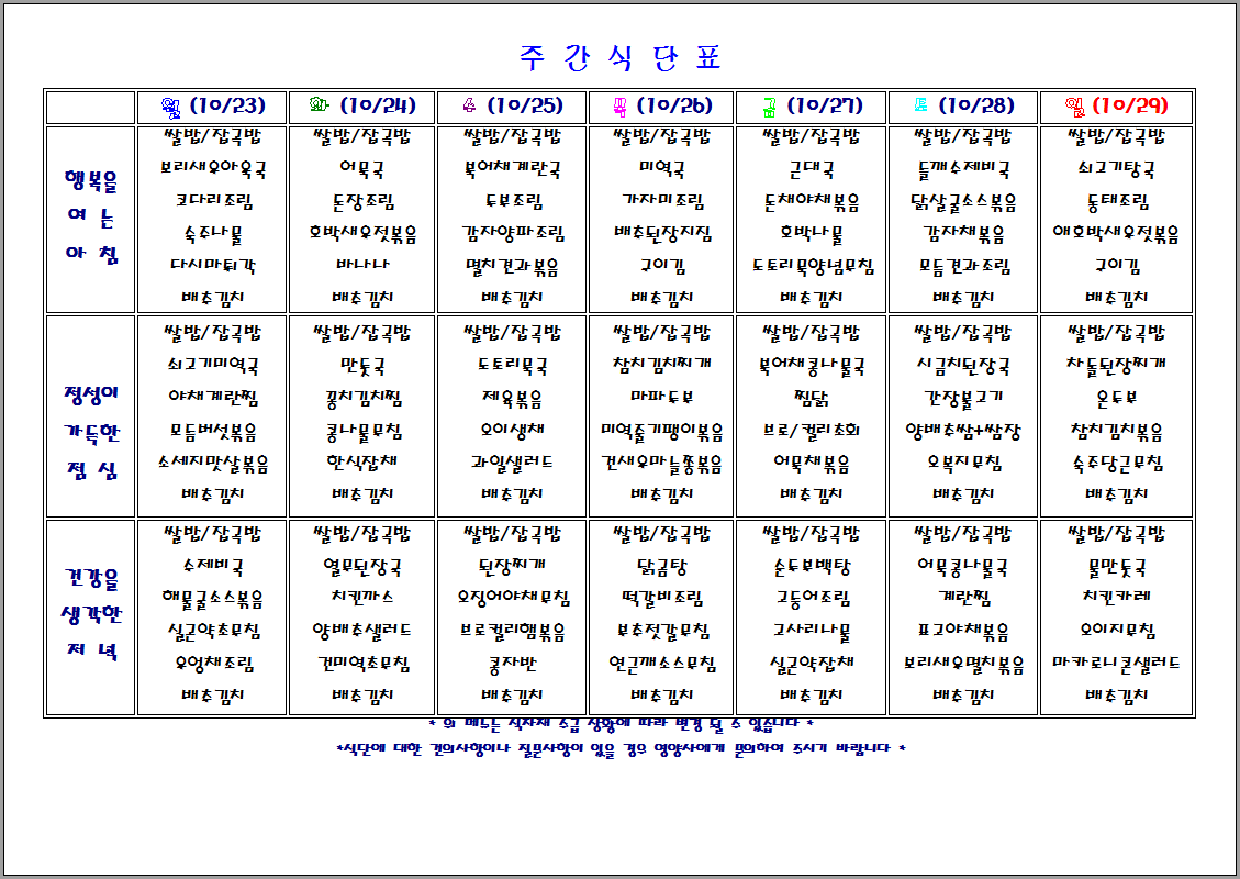 주간 식단표